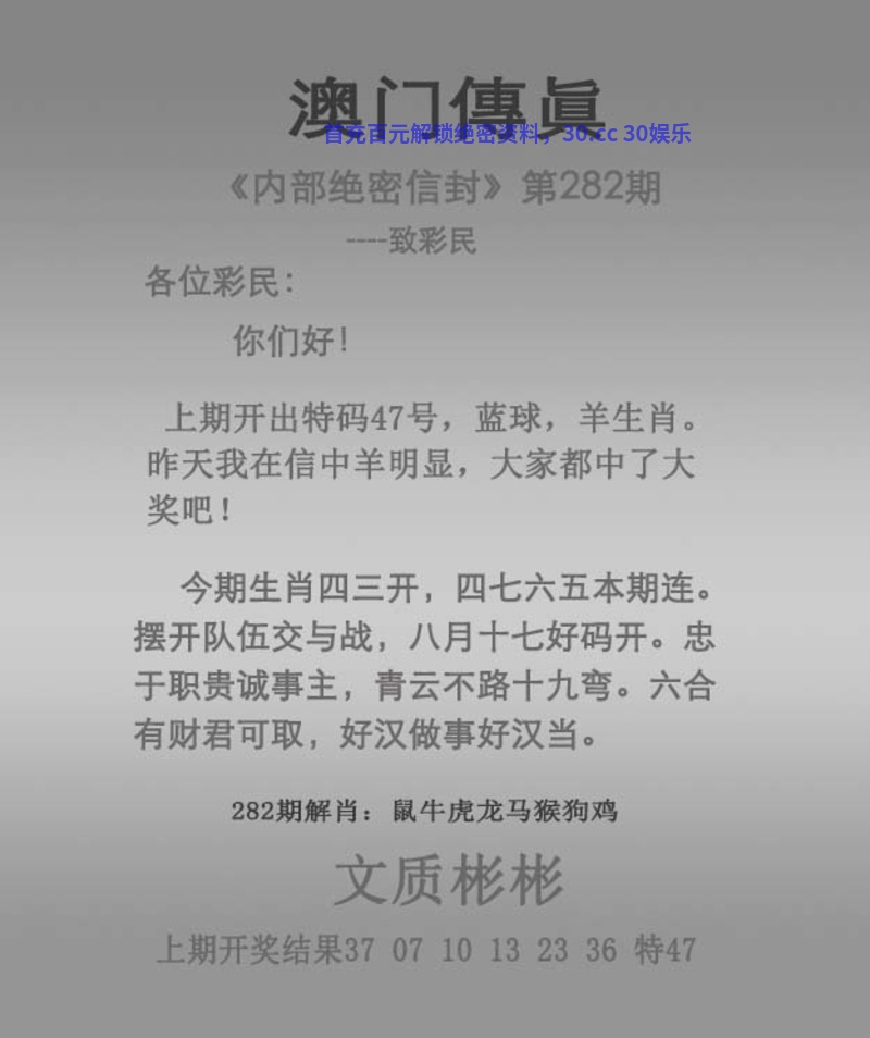 283期:独解传真 解:更新中 送:更新中 抓住一句解必中特 |